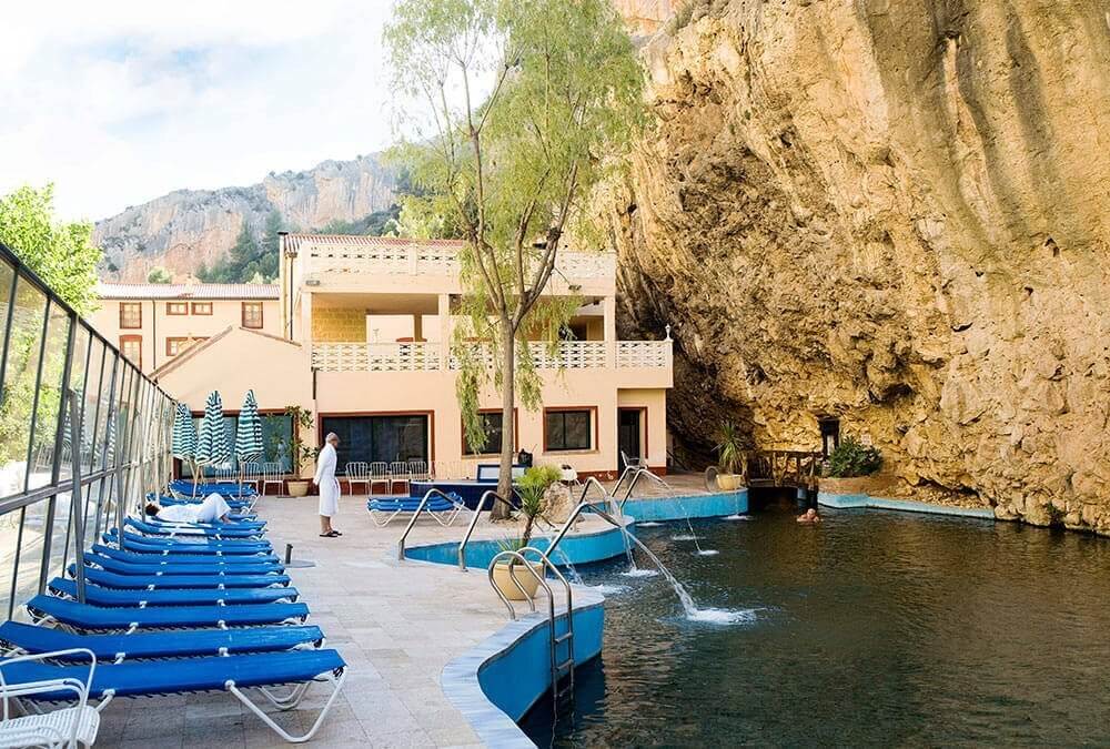 El Balneario de la Virgen se encuentra en el espectacular entorno natural de las hoces del río Mesa, rodeado por imponentes paredes de roca de 100 metros de altura y con el río a sus pies, en un paisaje que combina perfectamente la naturaleza y el bienestar.