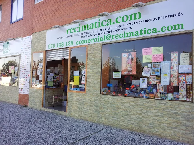Recimática Zaragoza es una tienda especializada en material de oficina, situada en la Avda. de los Estudiantes, 38, Zaragoza. Ofrecen una amplia gama de productos para empresas y particulares, incluyendo libros, papel, tinta para impresoras y sellos de caucho. Su servicio destaca por el asesoramiento profesional y opciones de entrega a domicilio. La tienda también tiene facilidades para accesibilidad y pago con tarjeta.